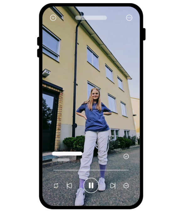 Du spelar enkelt in med en mobilkamera i stående format. Klicka här för tips på hur du ni får till en snygg video.